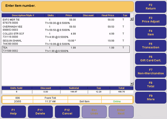When an item is selected, it appears on the screen highlighted with a blue box.